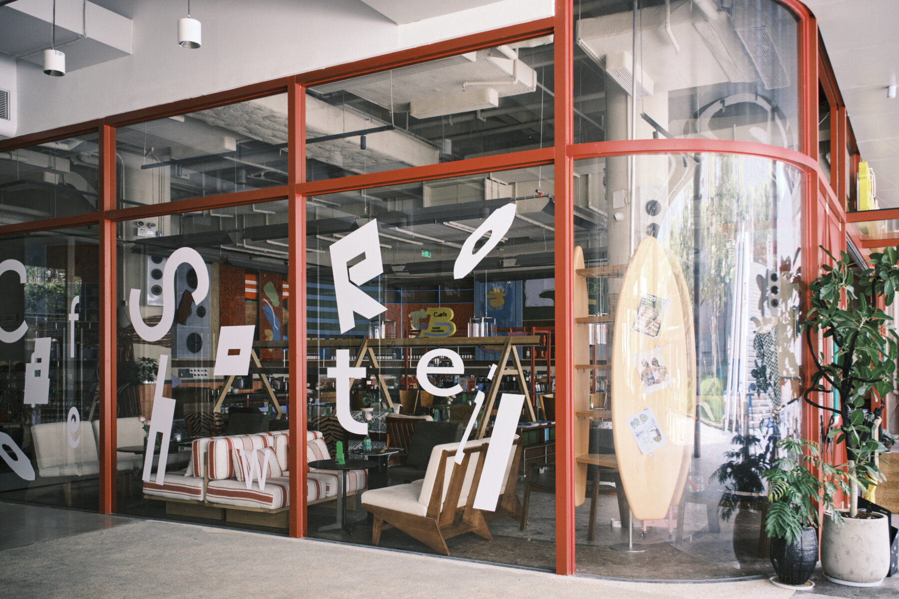 右边这张照片就是在万象城二期商场外的连廊拍的,连廊外有一只很大的猫猫雕塑,雕塑作品名为《猫与鱼》。