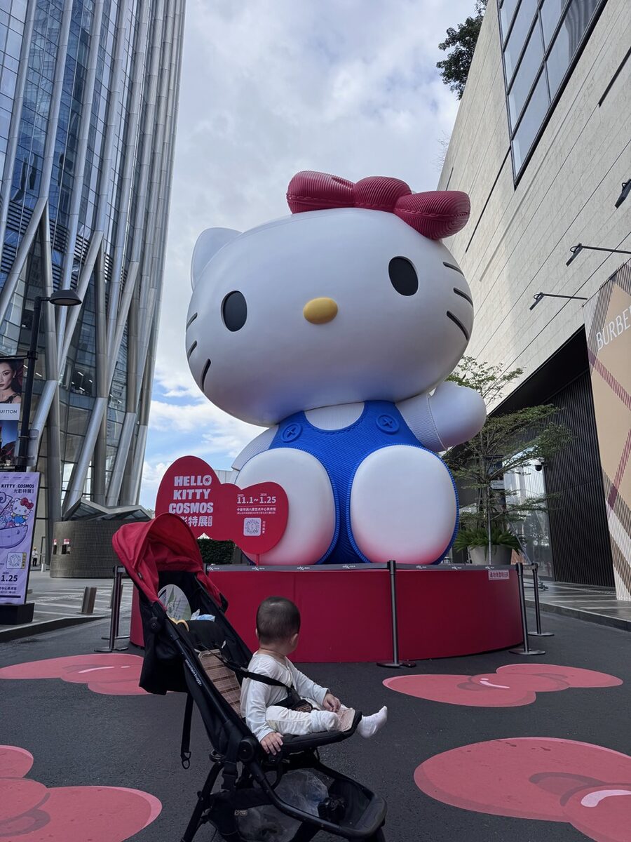 在10月12日早上,我们发现春笋前面多了一个巨型的Hello Kitty装置,深圳湾万象城真会整活。